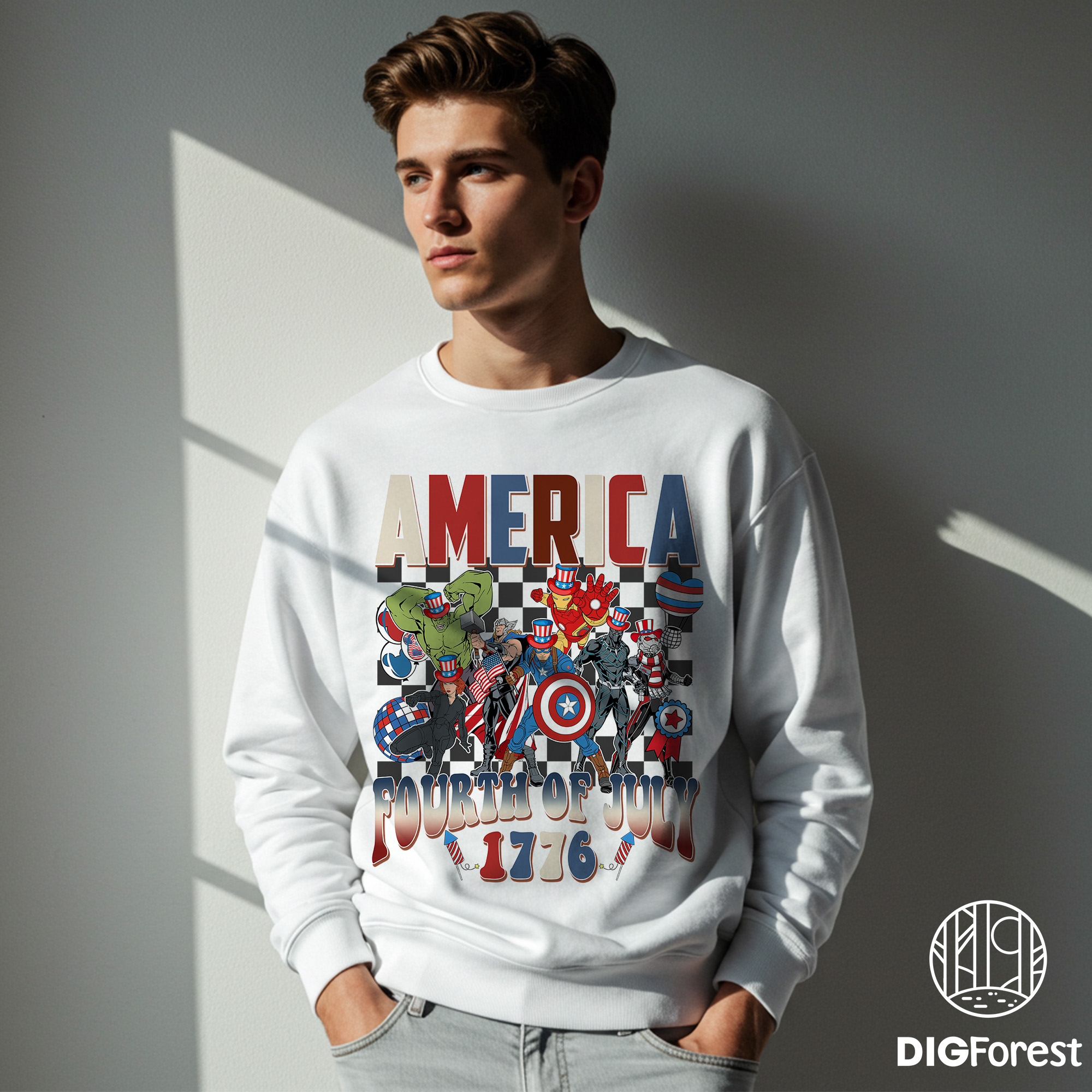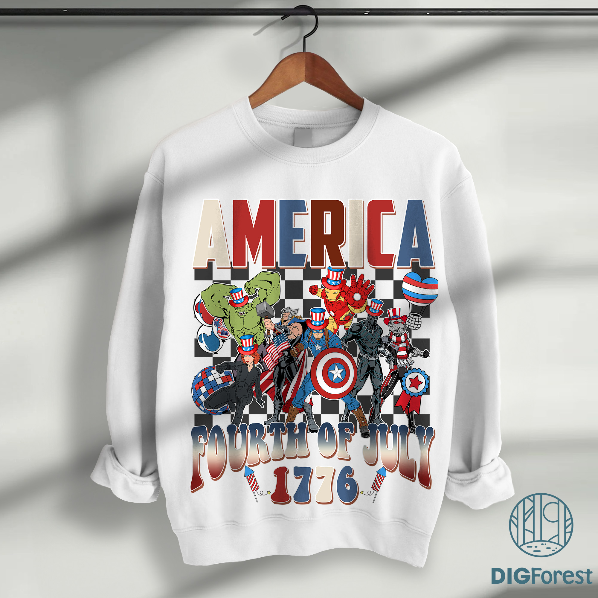 Avengers Checkered 4th of July Shirt | Patriotic Iron Man Thor Captain America Tee | Disneyworld Independence Day Shirt