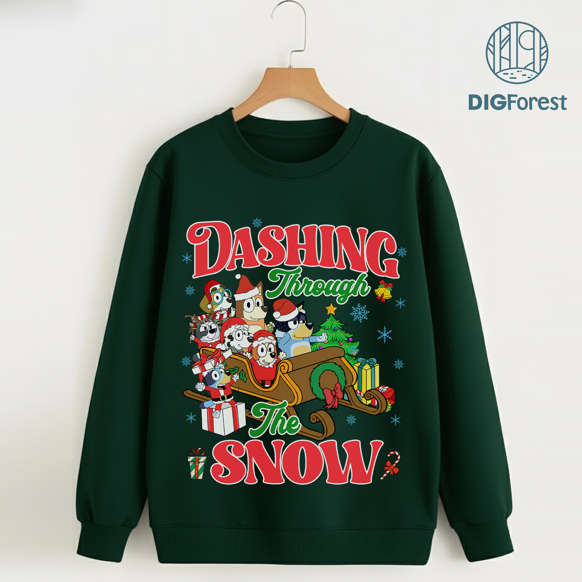 Bluey Christmas Shirt – Dashing Through The Snow Sweatshirt, Bluey Kids Christmas Shirt, Bluey Family Holiday Shirt