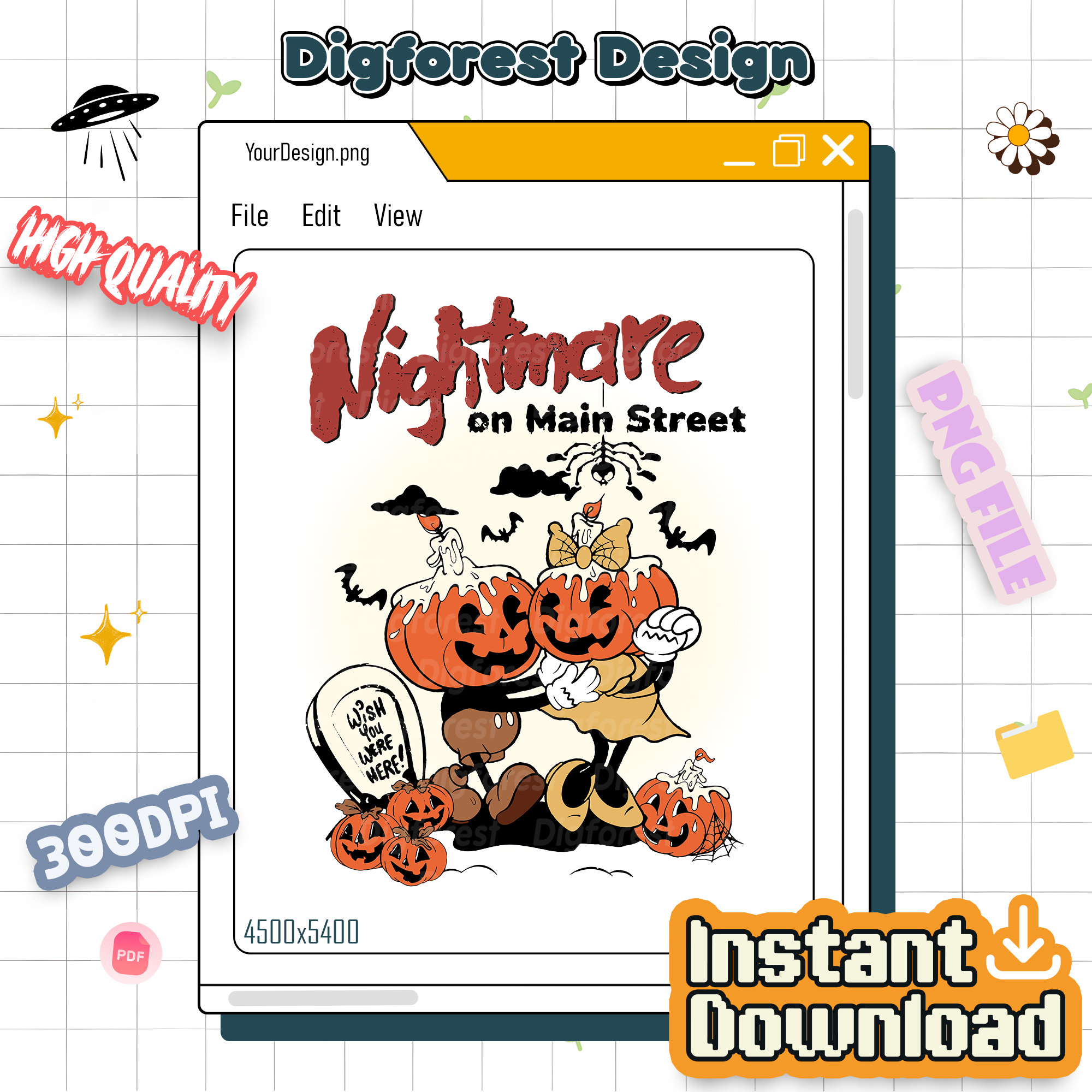 Mickey & Minnie Pumpkin Nightmare PNG, Nightmare on Main Street Shirt, Horror Halloween Party Design