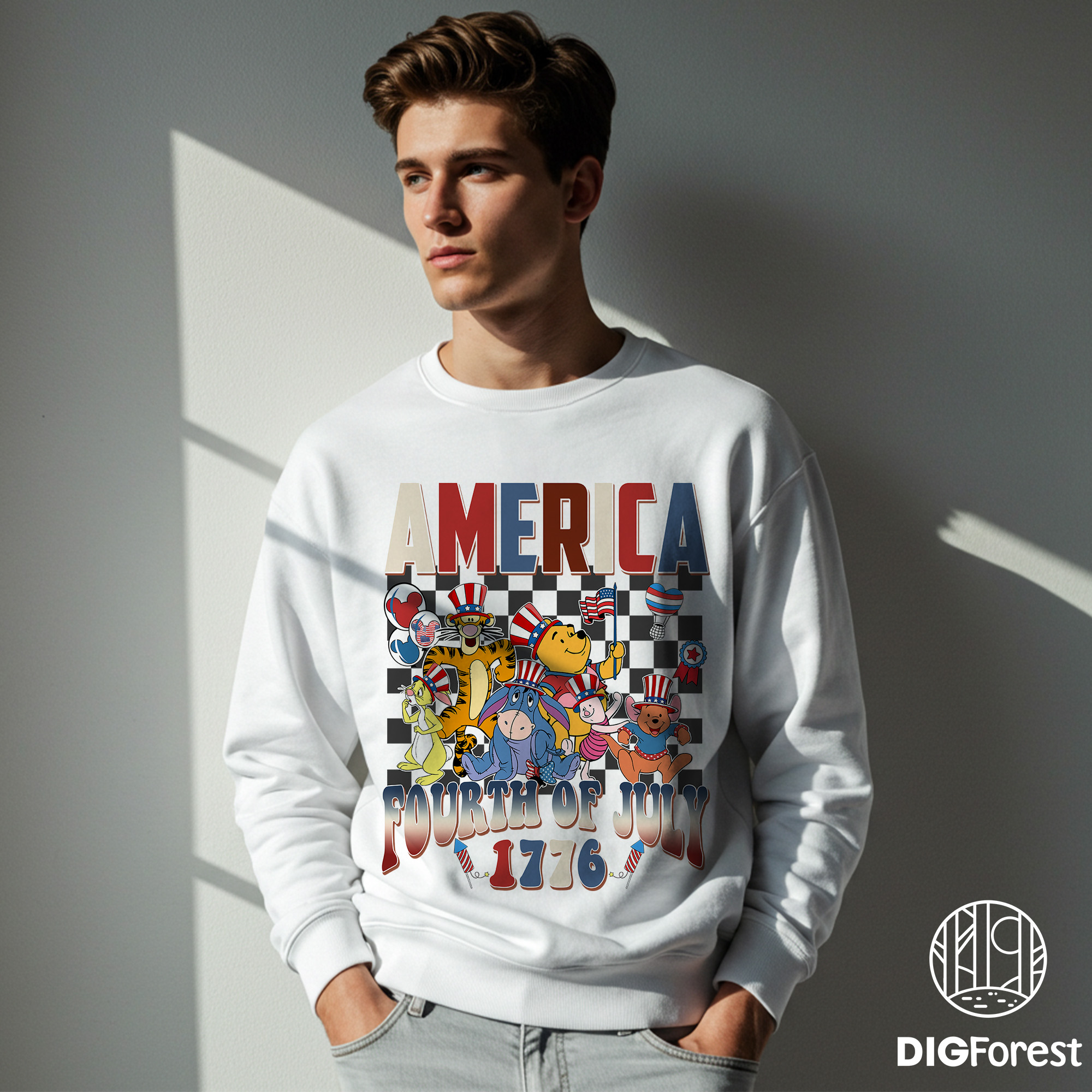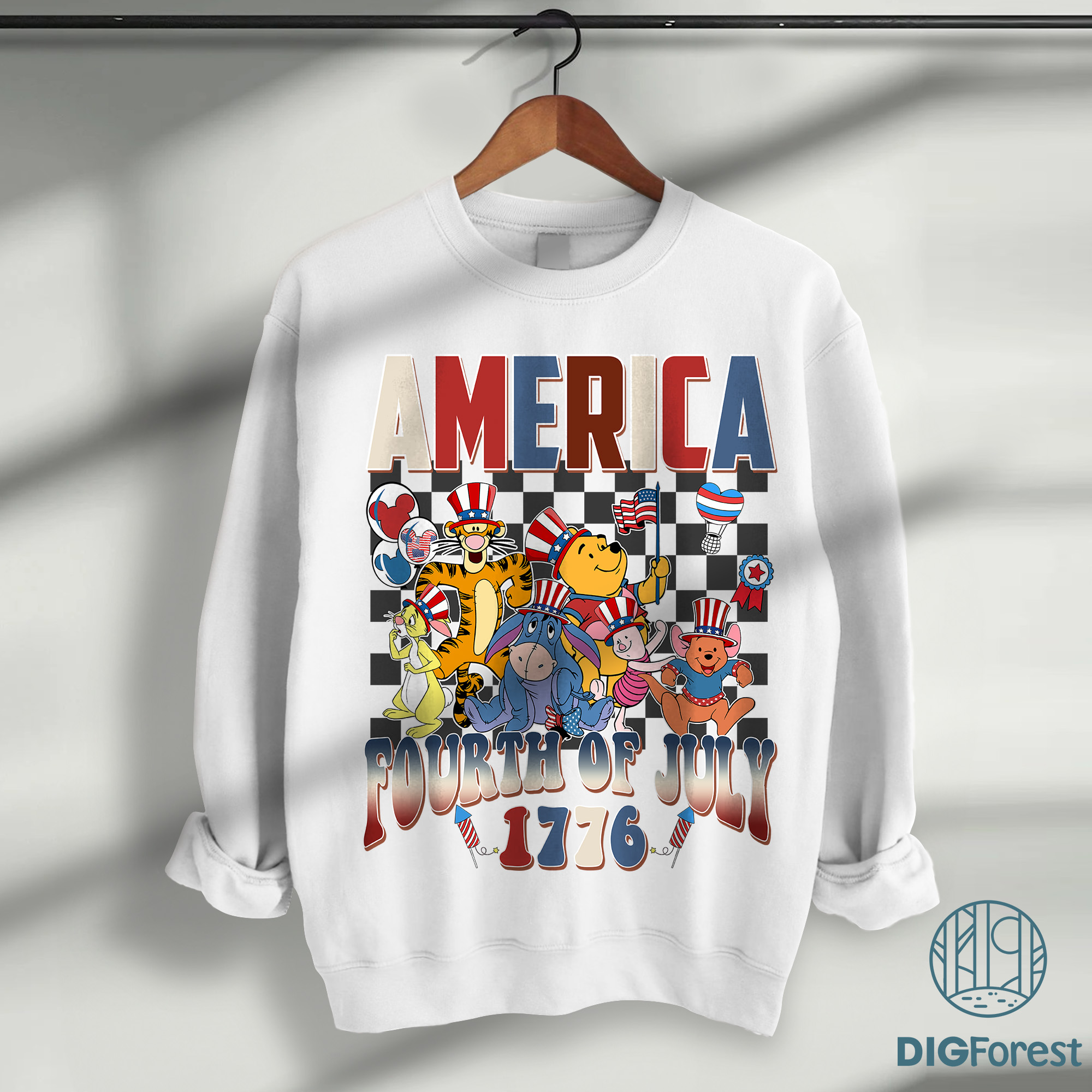 Disney Pooh and Friends 4th of July Shirt – Checkered Disneyland Patriotic Independence Day Tee