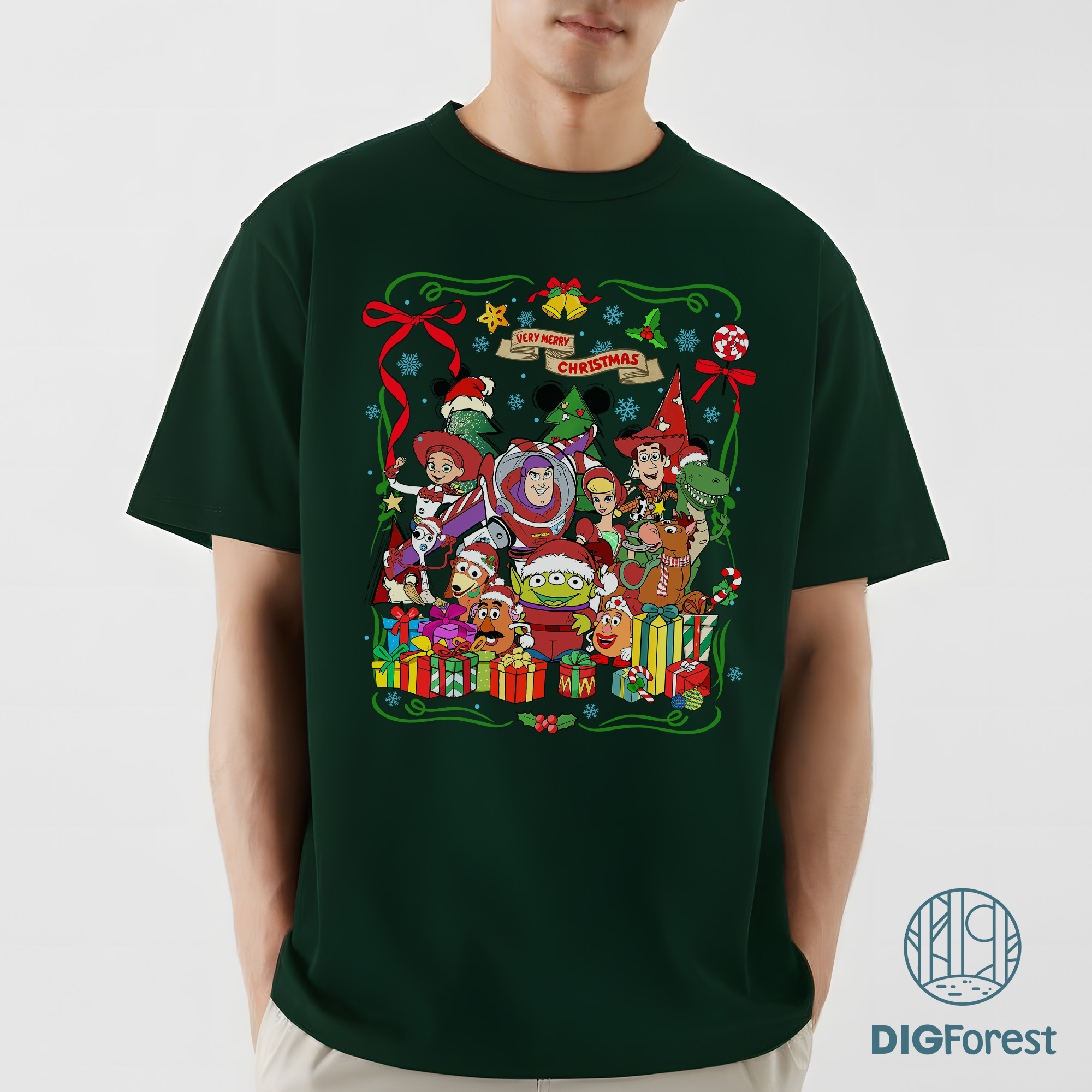 Disney Toy Story Christmas Lights PNG – Buzz Woody Jessie Slinky Xmas PNG, Mickey and Friends Christmas Group PNG