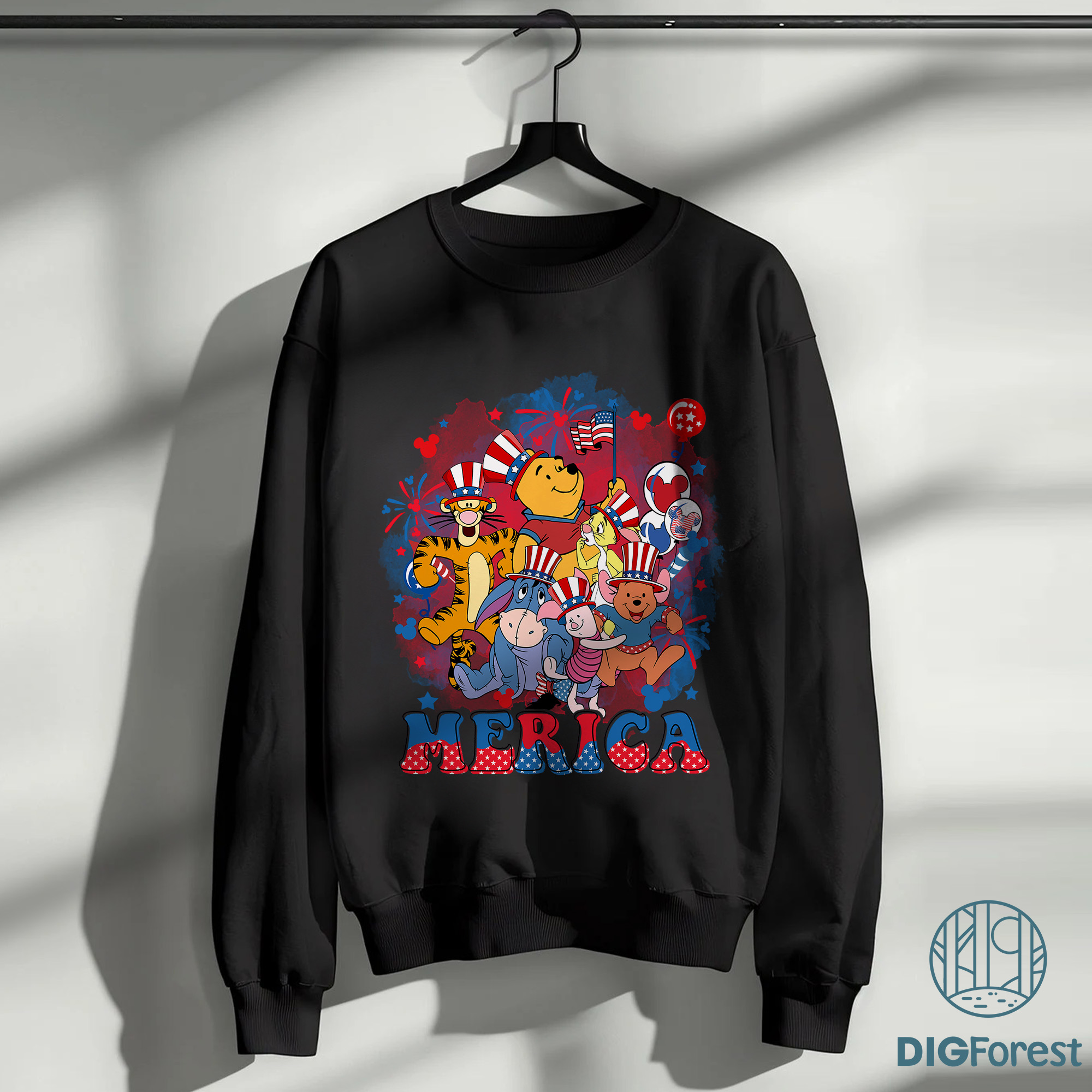 Disney Winnie the Pooh 4th of July PNG | Pooh, Tigger & Piglet | America Independence Day Instant Download