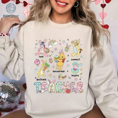Disney Winnie The Pooh Teacher Easter Day PNG | Cute Pooh Easter Shirt | Disneyland Teacher Bunny Shirt Disneyworld Happy Easter Shirt