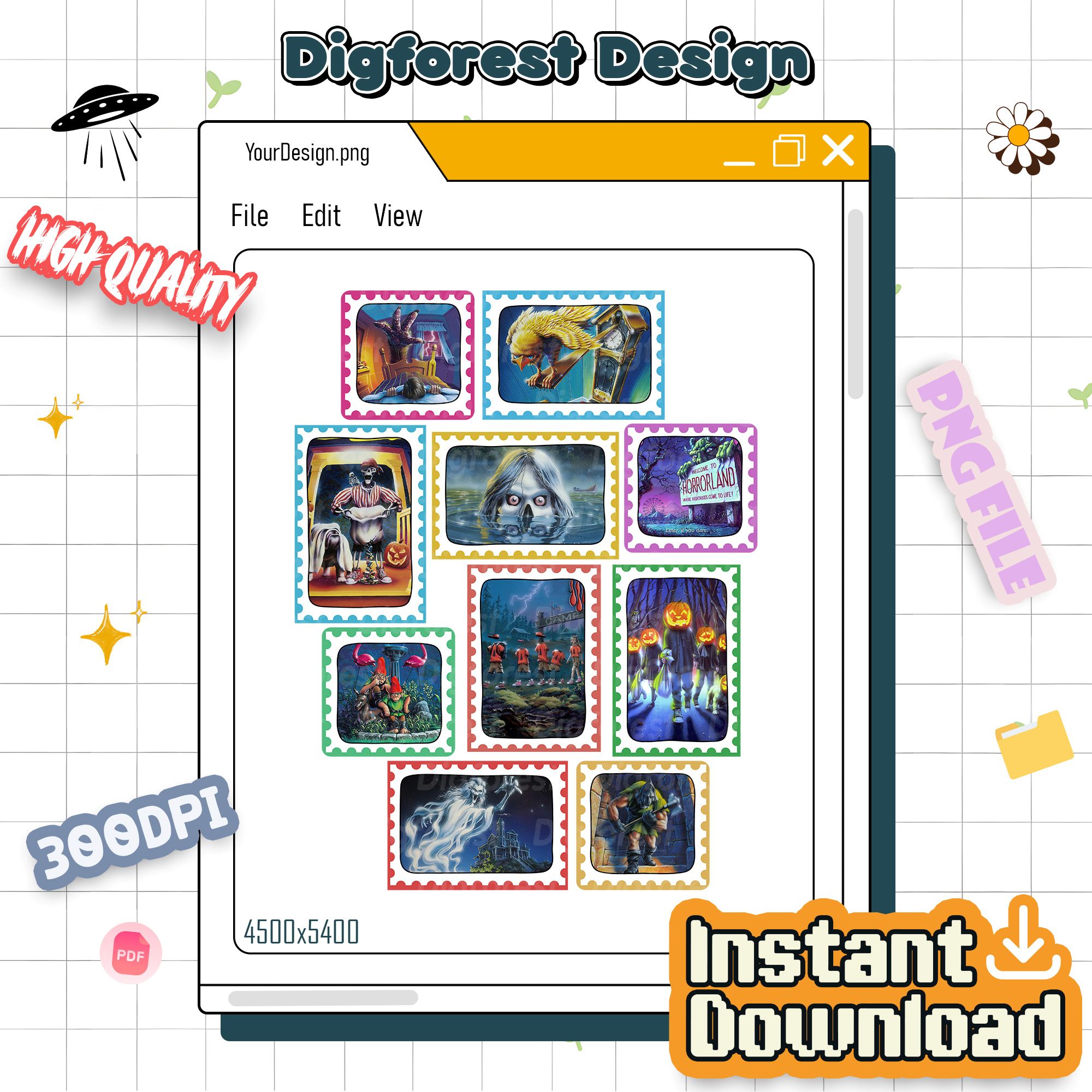 Halloween Goosebumps Books Stamp PNG – Haunted Mask, Horrorland Design, Halloween Party Holiday Outfit PNG