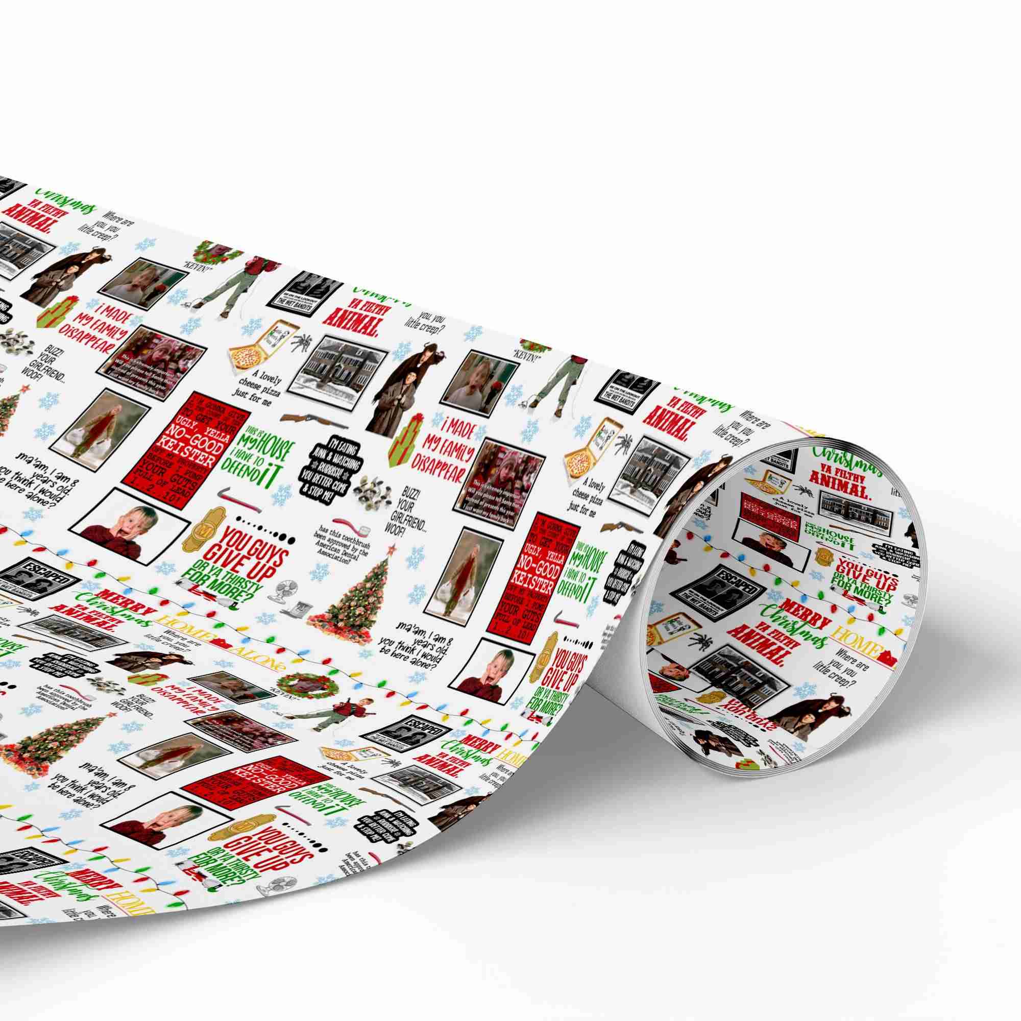Home Alone Christmas Movie Wrapping Paper – Kevin McCallister Funny Xmas Quotes Watercolor Gift Wrap