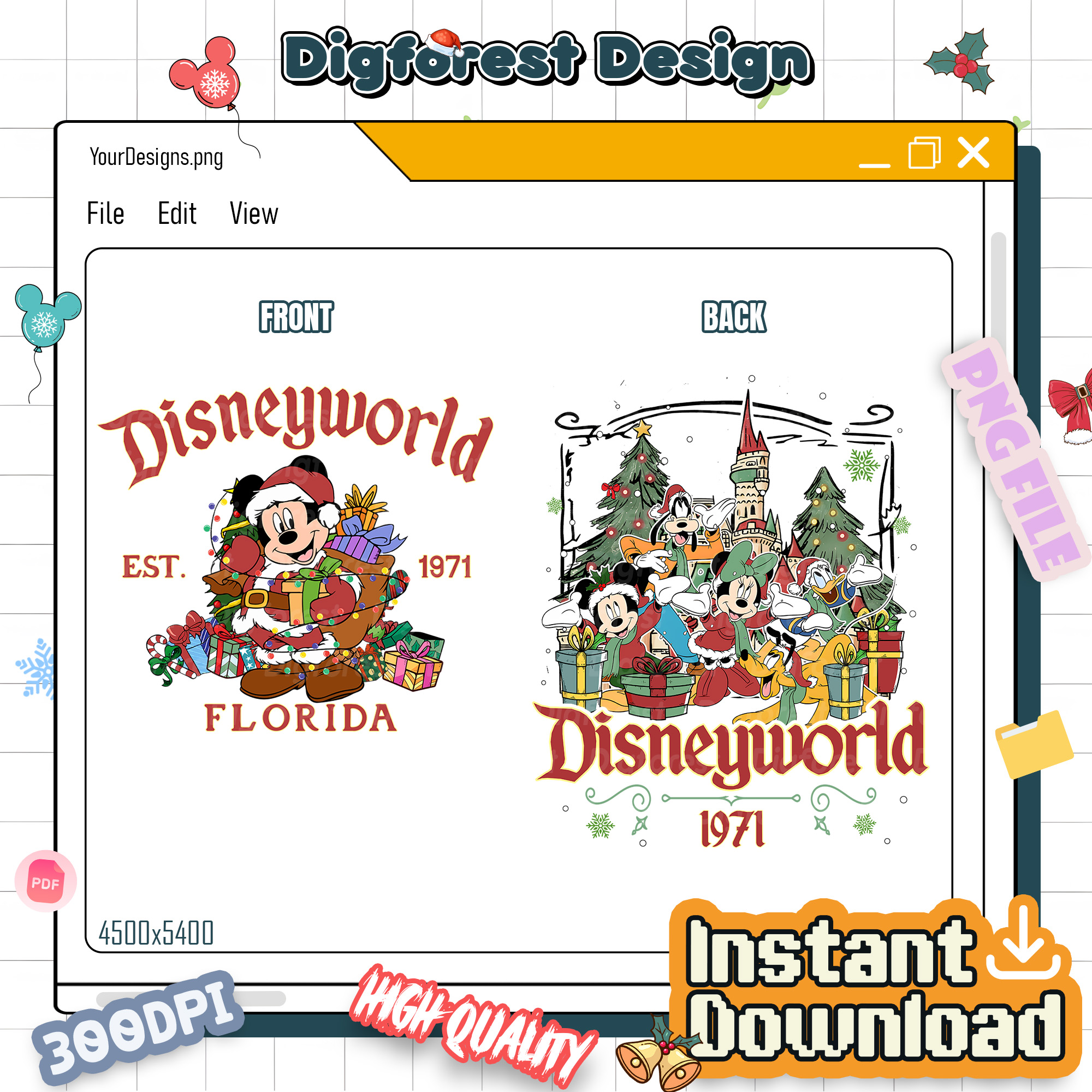 Mickey DisneyWorld Est 1971 Christmas PNG – Mickey and Friends PNG, Magic Kingdom Holiday PNG, Christmas 2025
