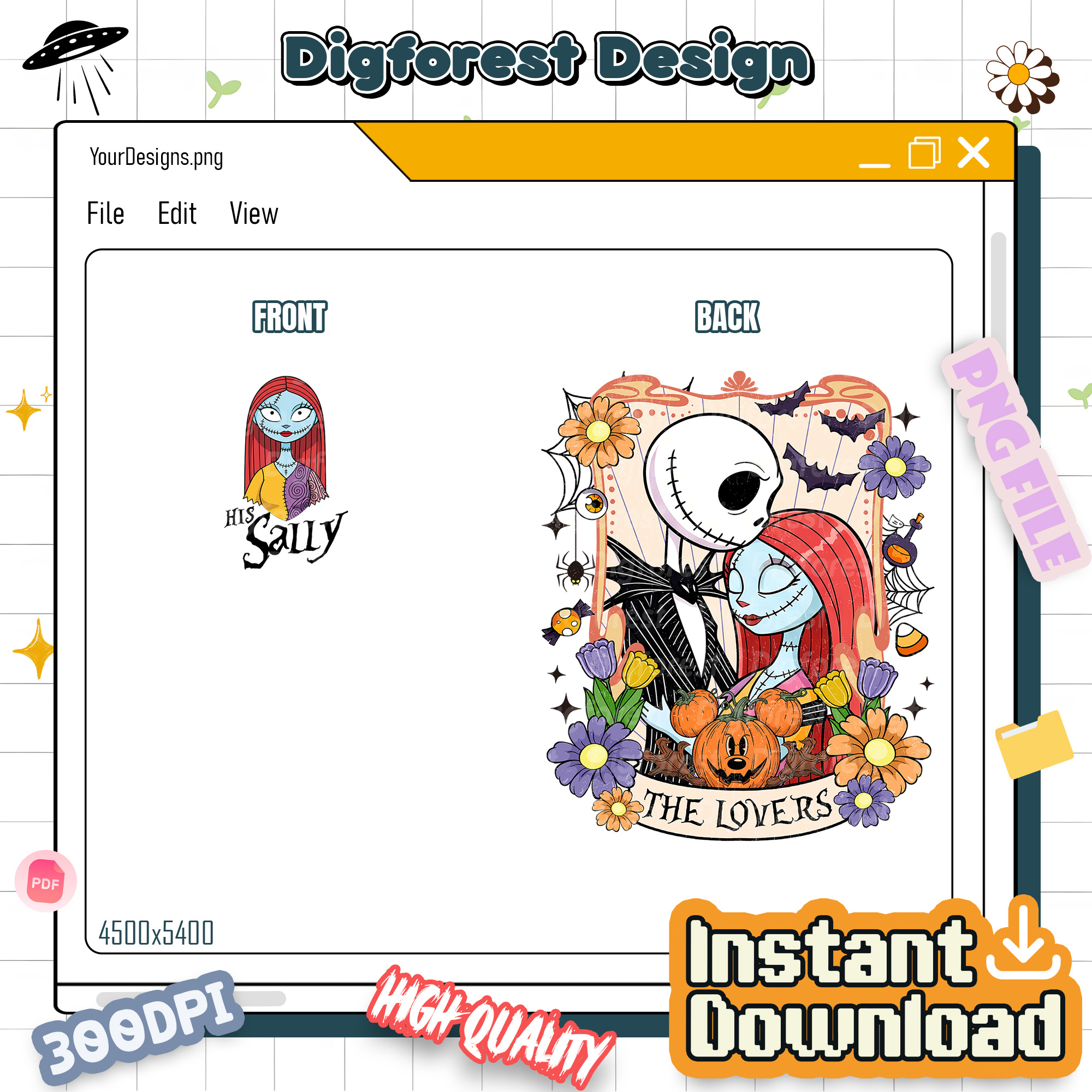 Nightmare Before Christmas Couple PNG – Jack Skellington And Sally Matching, Disneyland Halloween, Spooky Season Design)