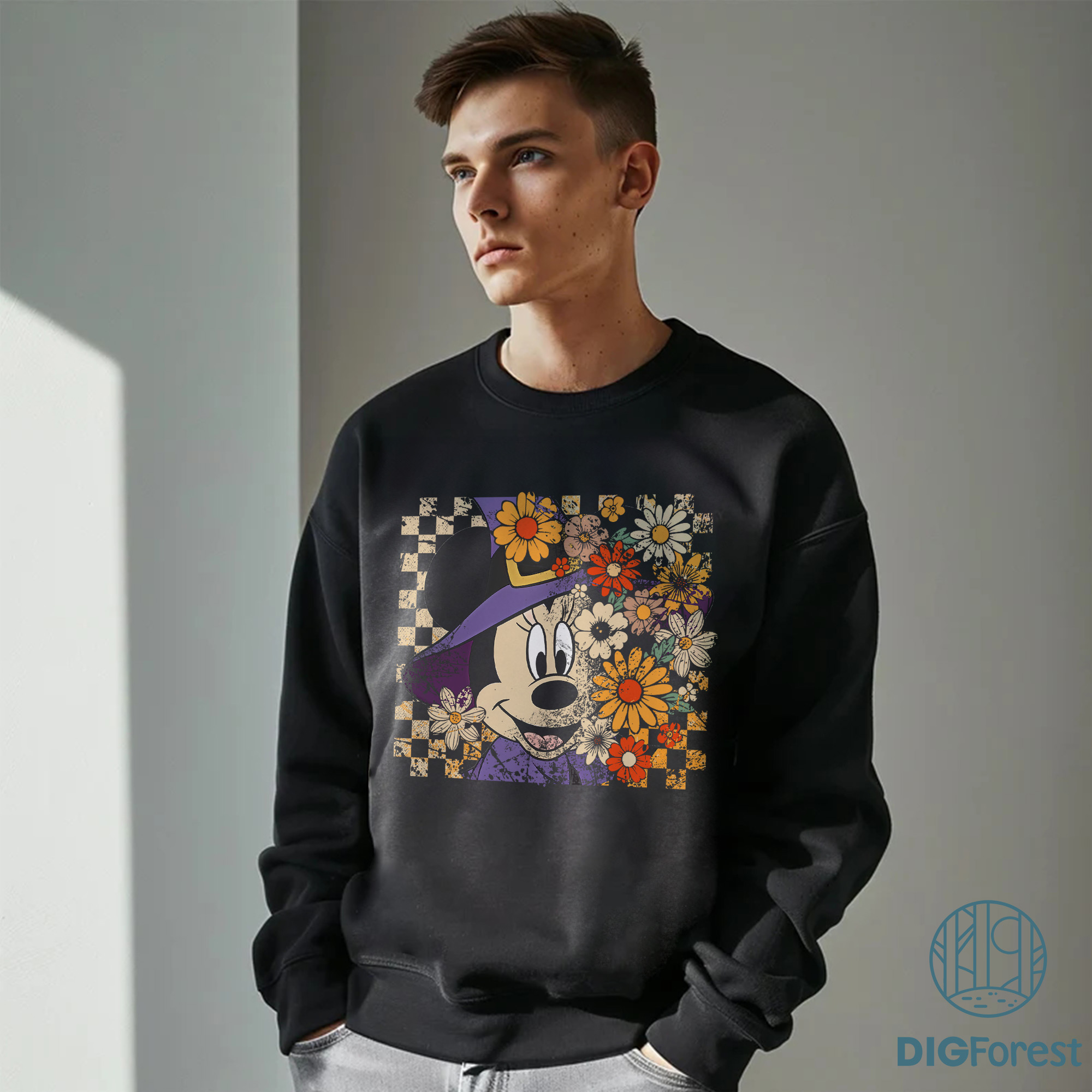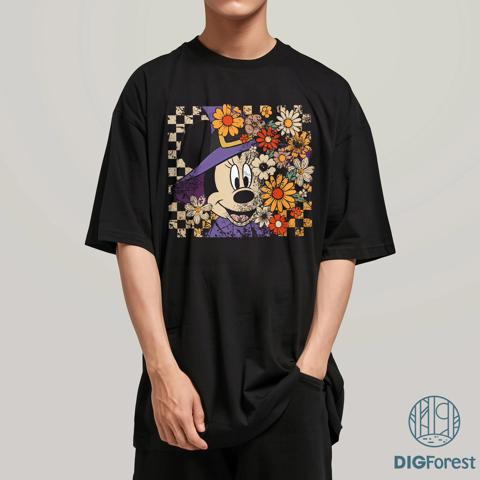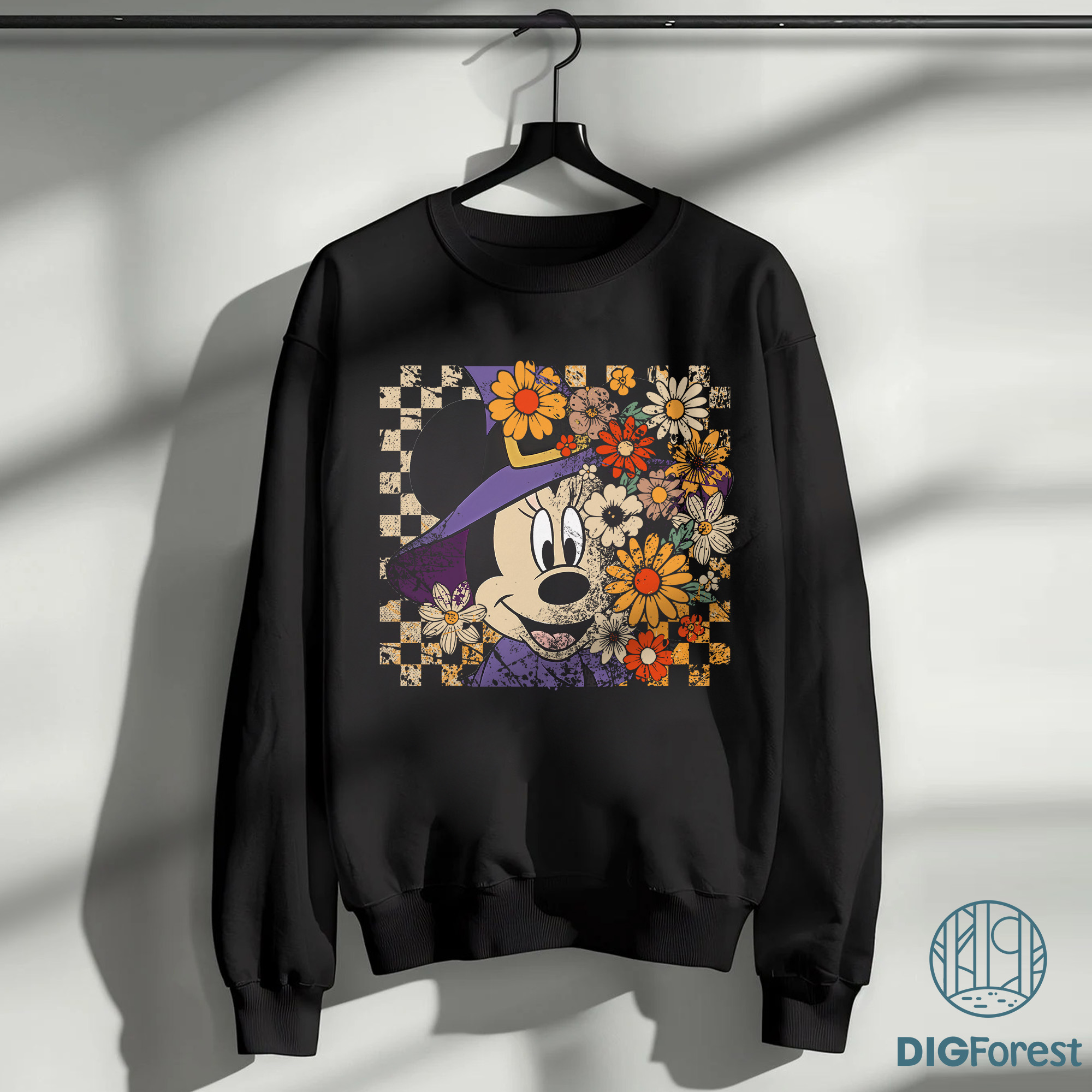 Retro Minnie Halloween PNG – Floral Coquette Horror Movie PNG, Minnie Mouse Witch Hat Halloween Character Design