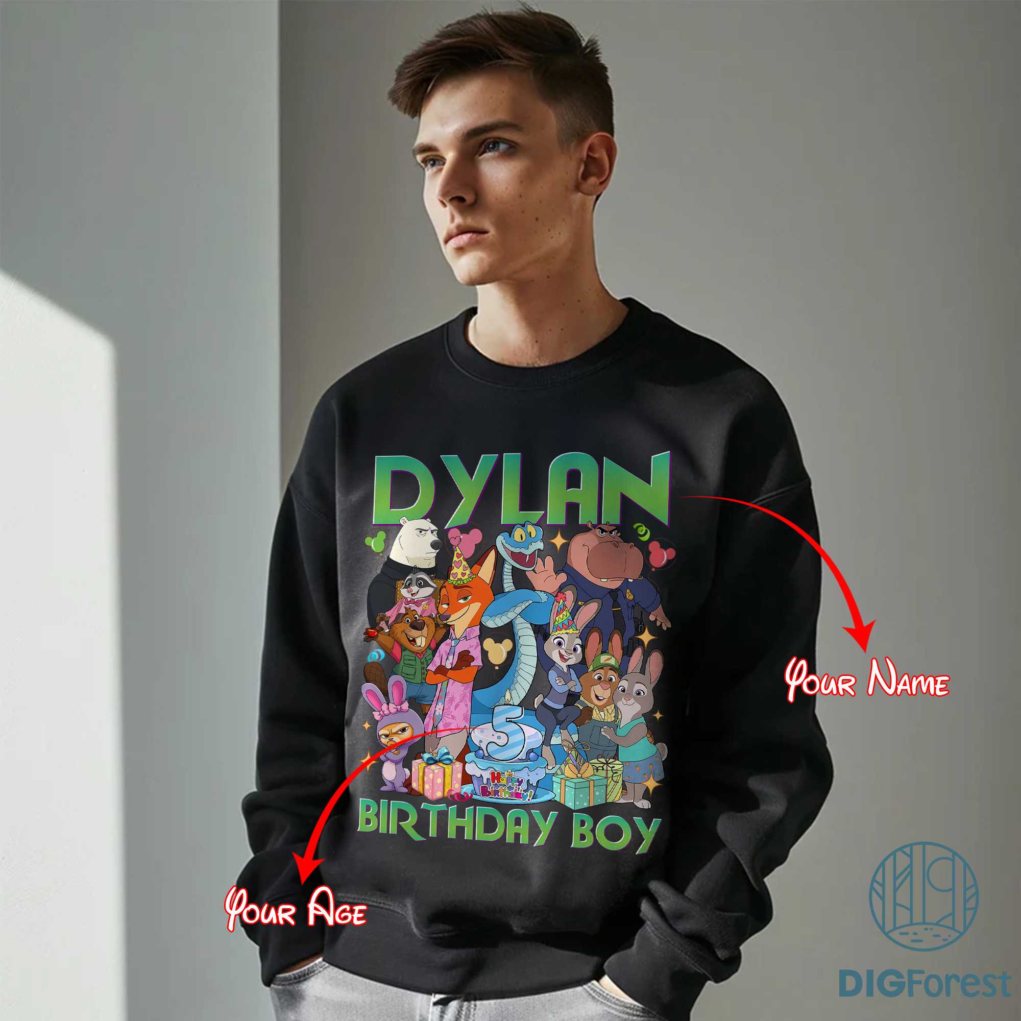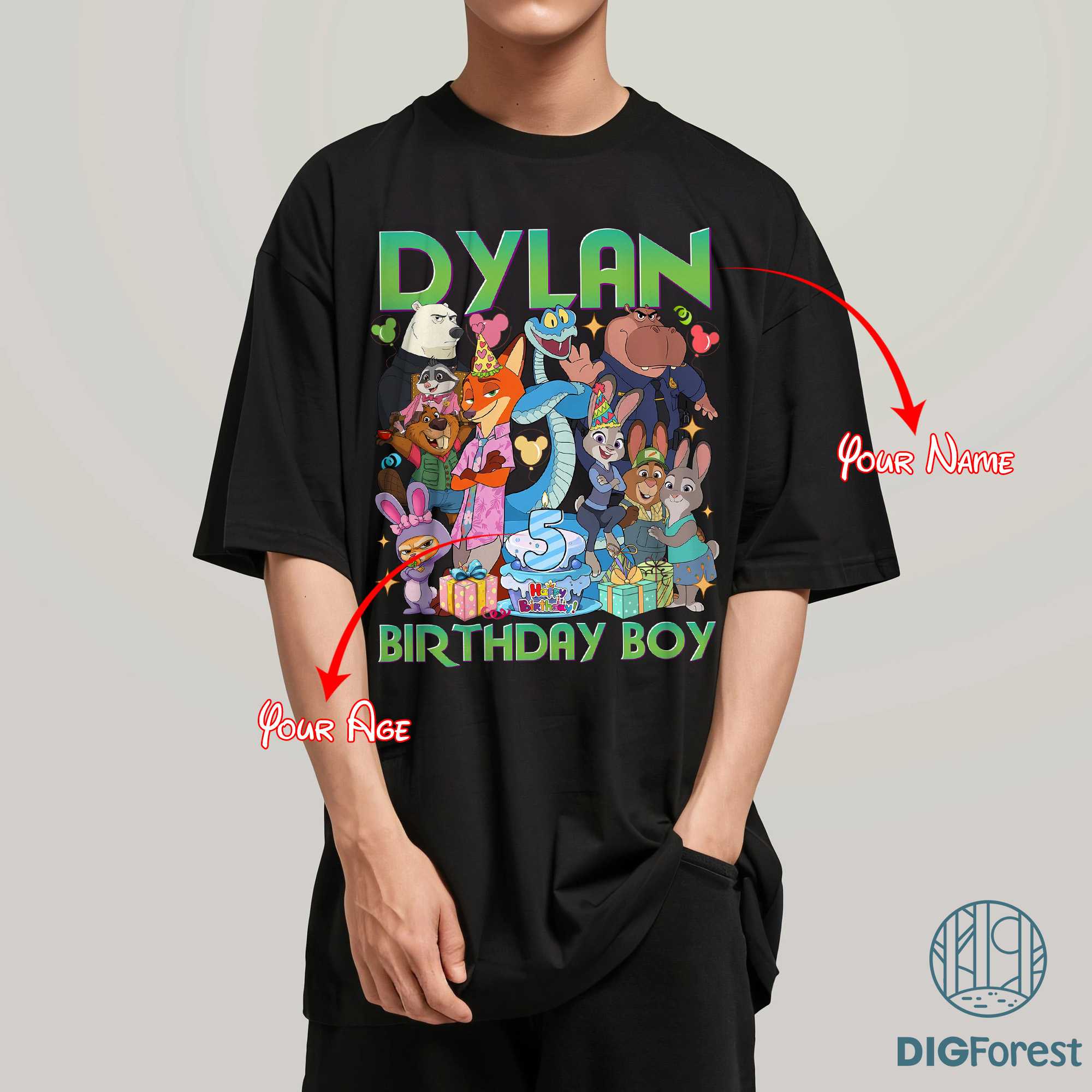 Zootopia 2 Birthday Custom Name & Age PNG – Kids Party Shirt Design, Animal Digital Download
