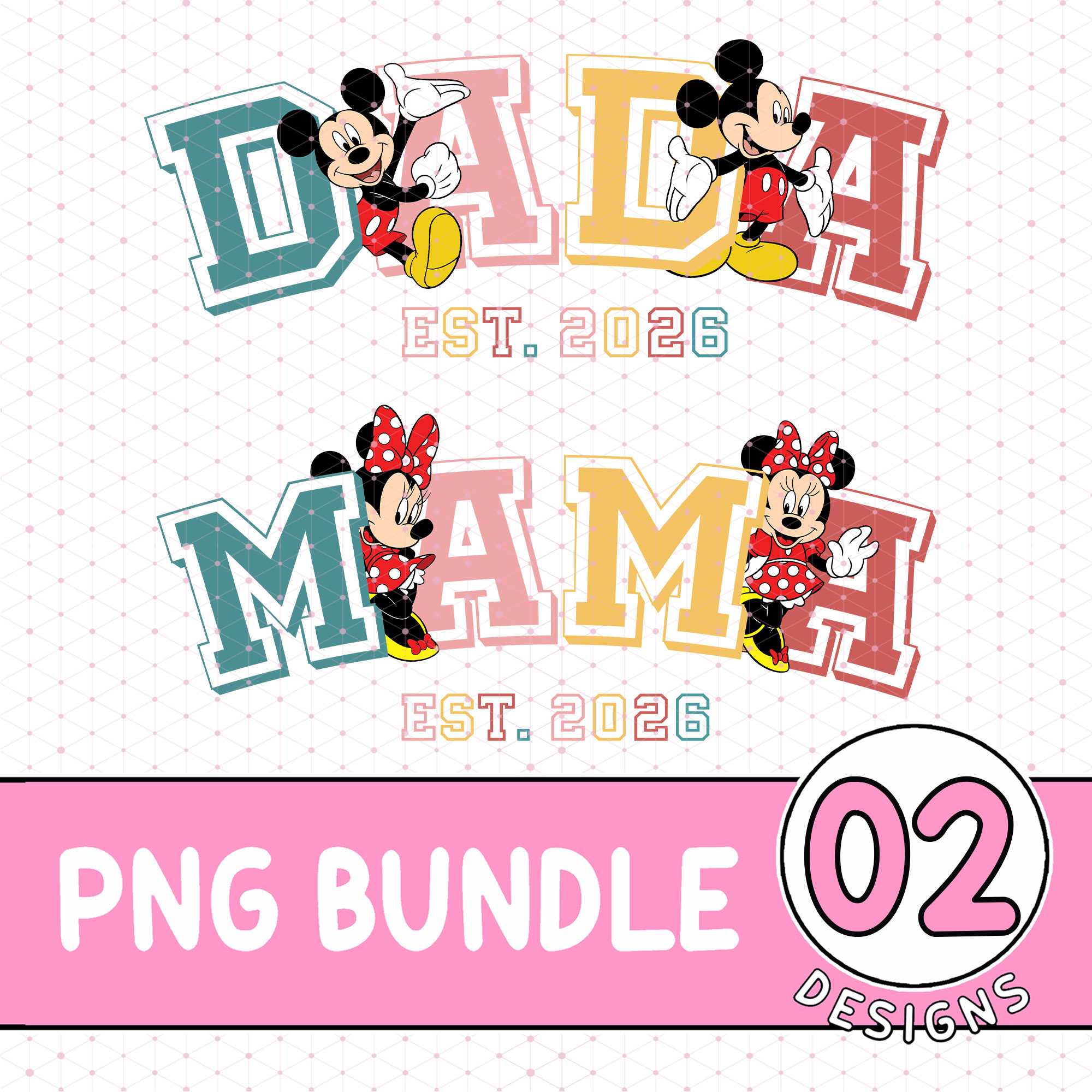 Mickey Minnie Mama Dada PNG Bundle – Mother’s & Father’s Day Download, Disneyland Family Mom Dad Design